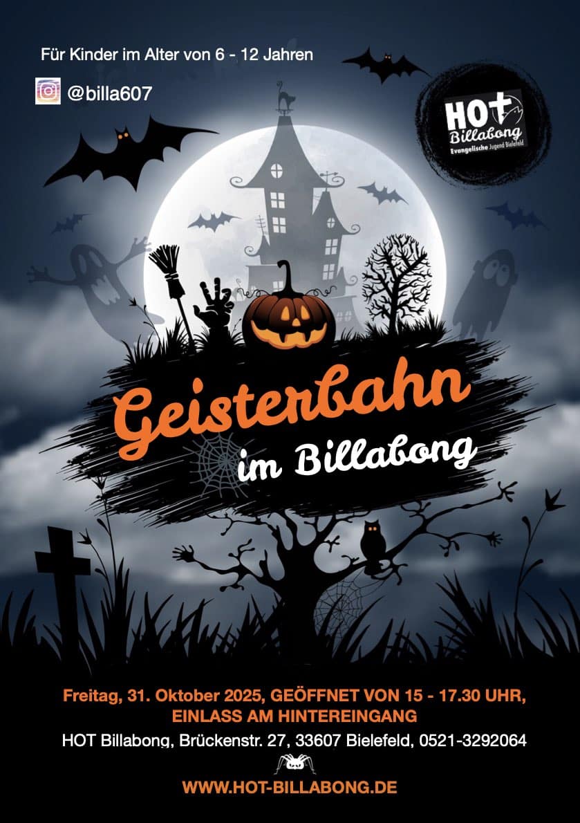 Am 31. Oktober 2025 öffnet sich von 15:00 bis 17:30 Uhr der Vorhang zu unserer Geisterbahn.