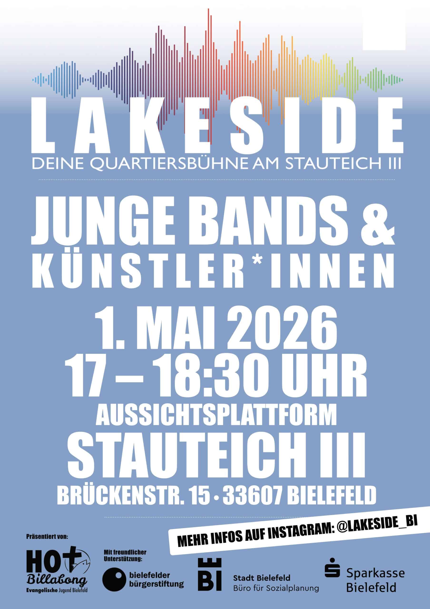 Weitere Informationen sind online auf der Webseite des Jugendzentrums HOT Billabong: https://www.hot-billabong.de/lakeside oder bei Instagram: @lakeside_bi zu finden.